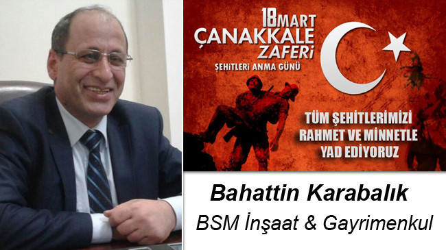 BSM İnşaat & Gayrimenkul’ün sahibi Bahattin Karabalık 18 Mart Çanakkale Zaferi ve Şehitleri Anma Günü sebebiyle bir mesaj yayımladı.
